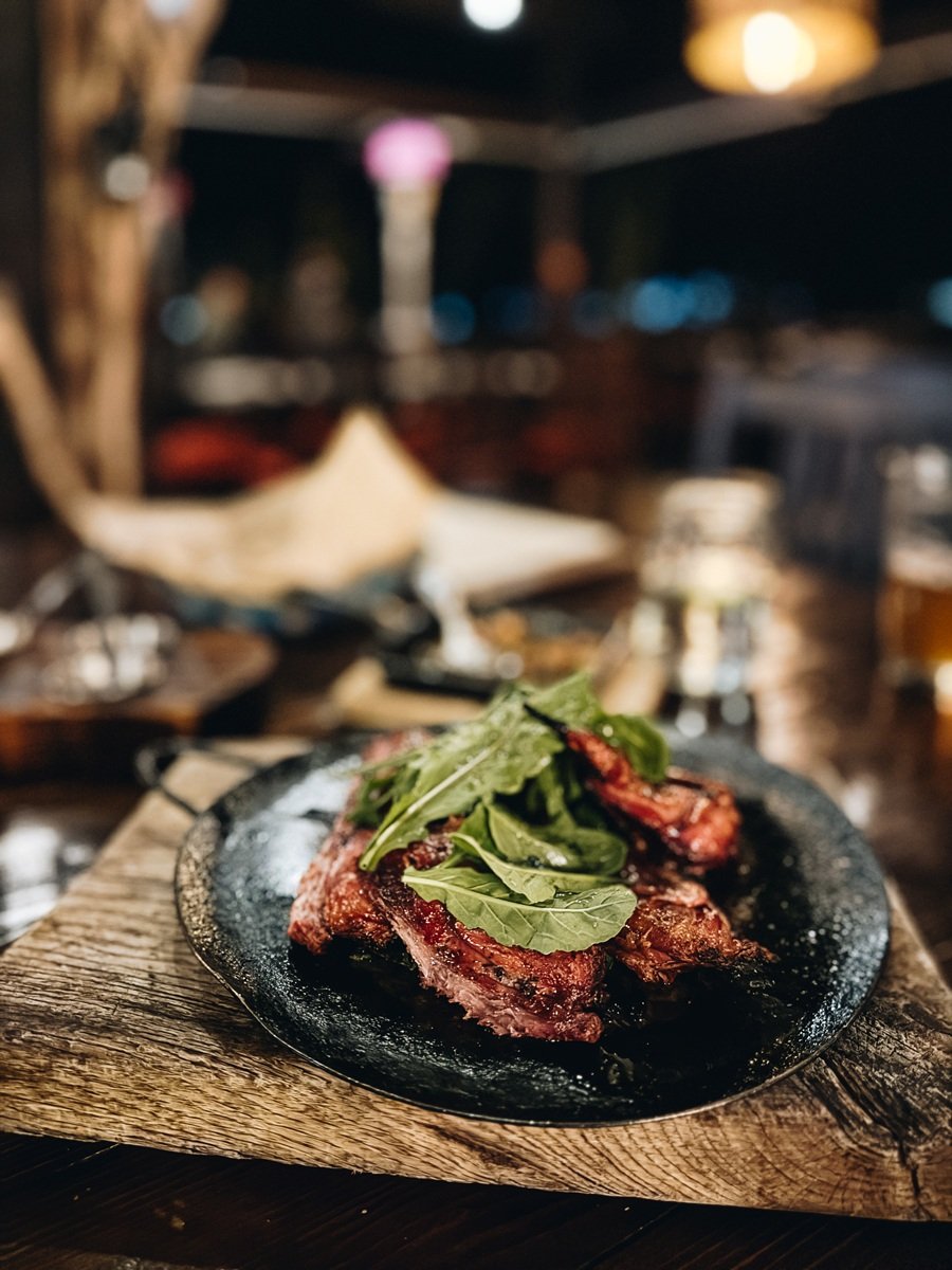 An open-air restaurant overlooking the vineyards, Finca Altozano blends rustic attraction with elevated Baja delicacies, serving wood-fired dishes like grilled octopus, bluefin tuna tostadas, and oak-grilled quail alongside regional wines. Plus, a number of the cutest rescue canine are roaming across the eating room!